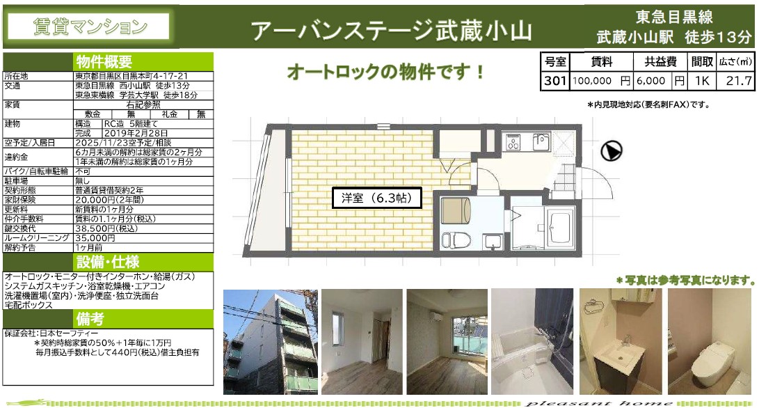 | 所在地 | 東京都目黒区目黒本町4 アーバンステージ武蔵小山 |