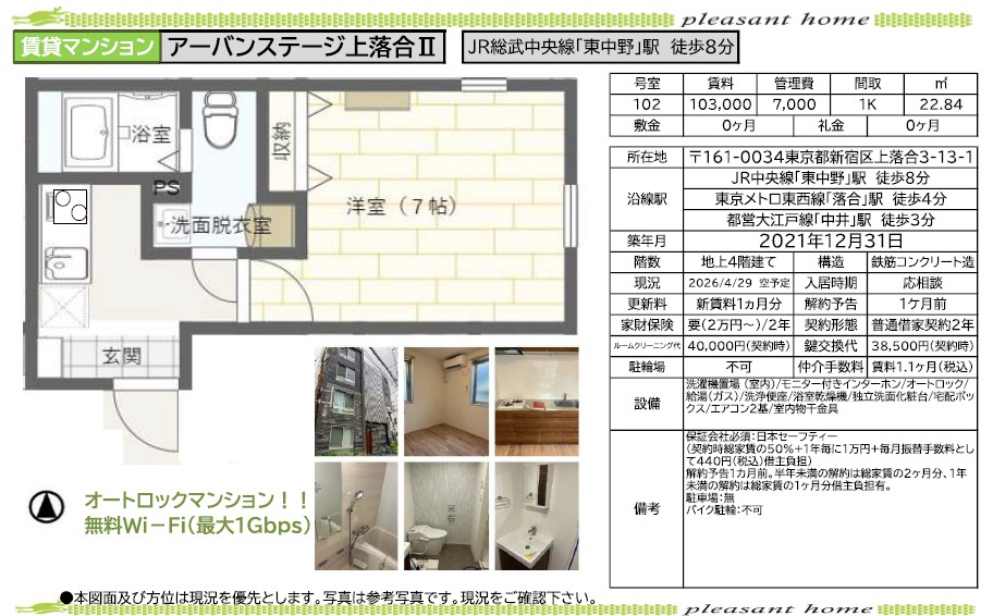 | 所在地 | 東京都新宿区上落合3丁目 アーバンステージ上落合Ⅱ |